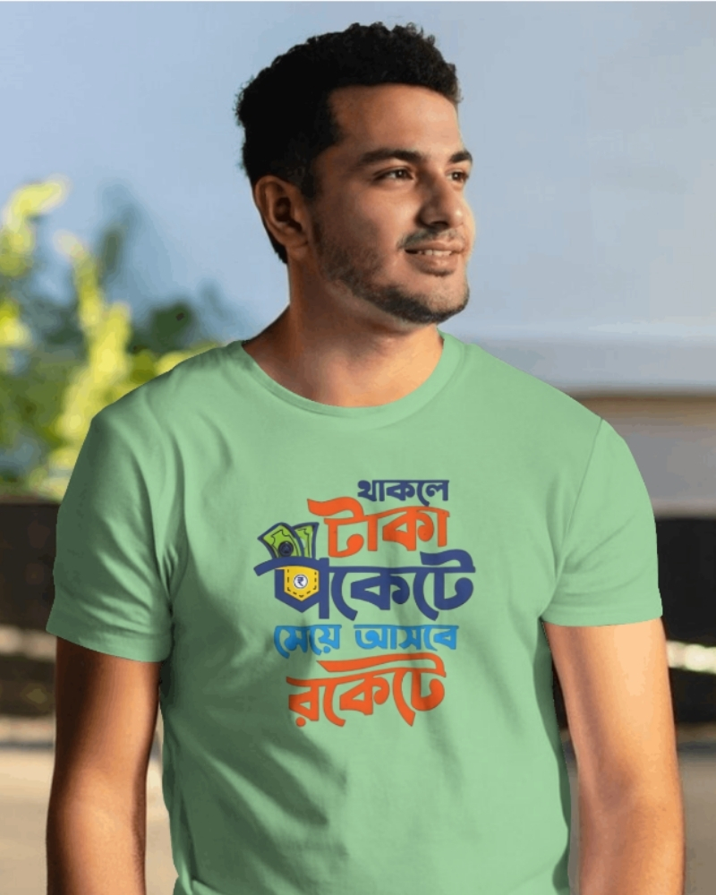 Thakle Taka Pocket A Meye Asbe Rocket A Bengali Pure Cotton Unisex Printed T-Shirt